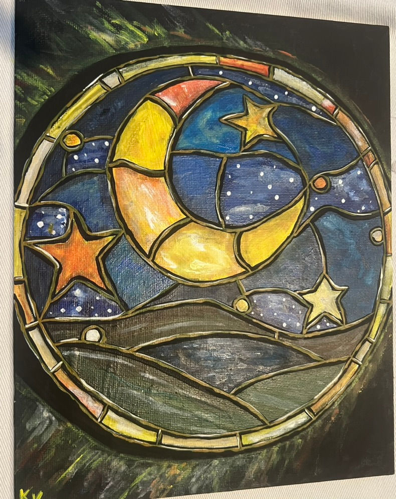 Artwork featuring moon, stars, and serene night sky scenes with a touch of magic and wonder.